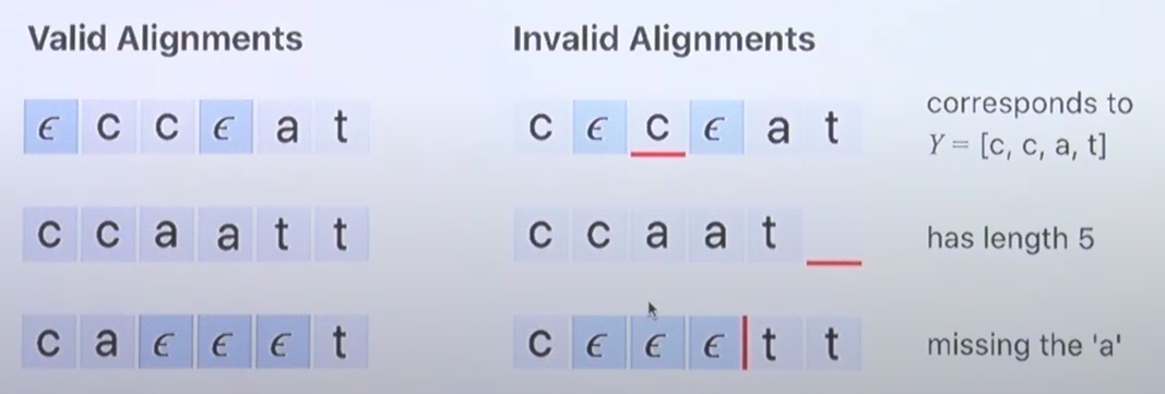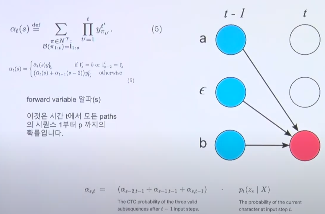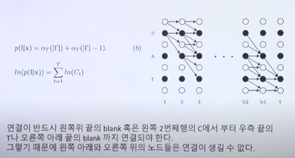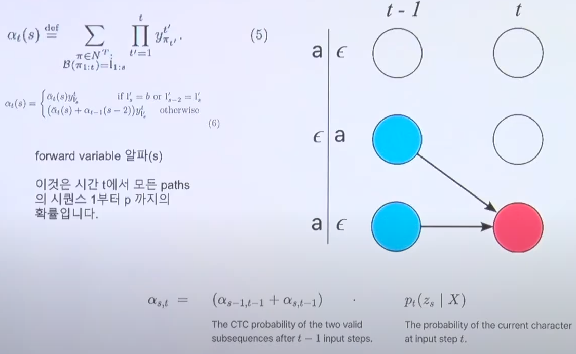 - 따라서 가능한 모든 alignment를 고려한 모델을 만드는 것이 CTC의 방법이다.
